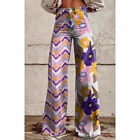 Retro / vintage 1970 Fajny Spodnie Spodnie z szerokimi nogawkami Hipisowskie Dyskoteka Wysoka talia Psychodeliczny Styl sztucznych dżinsów Strój na bal maskowy Damskie Karnawał Codzienne Festiwal