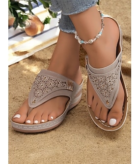 damskie czerwone sandały na koturnie z kryształkami, z odkrytymi palcami, wygodne letnie obuwie na niezobowiązujące wyjścia i wakacje