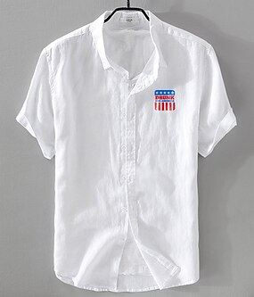Męskie Koszula lniana Codzienna koszula Koszula bawełniano-lniana Zapinana na guziki koszula Wzór Urlop Ulica Biały Granatowy Błękit nieba Morelowy Krótki rękaw Klapa Lato Odzież Przycisk w dół
