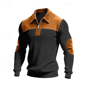 Męskie Bluza polo Koszula golfowa Biznes Dzienne zużycie Quarter Zip Długi rękaw Moda Styl klasyczny Kolorowy blok Zamek Wiosna Jesień Czerwony Granatowy Ciemnozielony Ciemnoszary Bluza polo