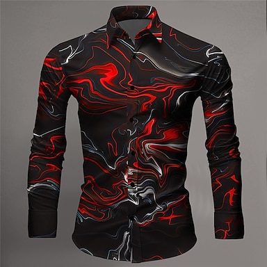 Męskie Marmur Abstrakcyjna sztuka płynna Koszula Zapinana na guziki koszula Koszula casualowa Długi rękaw Ciemny Urlop Codzienny Streetwear Lato Wiosna Wieczorne Druk 3D koszule z kołnierzykiem Wino