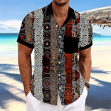 Męskie Geometryczny Etyka / Afrykańska Koszula Zapinana na guziki koszula Krótkie rękawy Vintage Retro Codzienne Lato Wiosna Wieczorne Druk 3D Jedna kieszeń z przodu Koszula z lnu Czarny