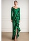Ołówkowa / Kolumnowa Sukienka koktajlowa Elegancja Suknia formalna Formalny Gość weselny Asymetryczna Długi rękaw Z odsłoniętymi ramionami Satyna z Falbany 2025