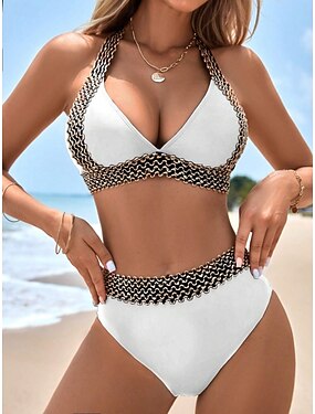 Bikini damskie 2-częściowe Leopard Thong smukłe bez pleców na wakacje plażowy paisley dekolt halter bez rękawów