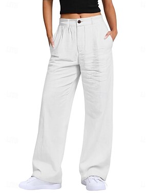 Damskie Sztuczna bawełna len Spodnie szerokie nogawki Spodnie codzienne Letnie spodnie Urlop Moda miejska Podstawowy Pełna długość Średia talia Równina Kieszeń Oddychalność Wygodny Nieelastyczny
