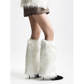 Damskie ocieplacze na nogi ze sztucznego futra, puszyste nakładki na buty za kolano, stylowe dodatki do zimowych strojów imprezowych, stroje na Boże Narodzenie i święta