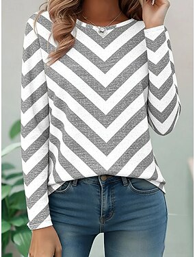 Damskie Podkoszulek Nadruk Graficzny Geometryczny Prążki Elegancja Zabytkowe Moda Długi rękaw Półgolf Okrągły dekolt Zwykłe topy Codzienny Wyjściowe Weekend Niebieski Czarny Biały Wiosna Jesień Zima