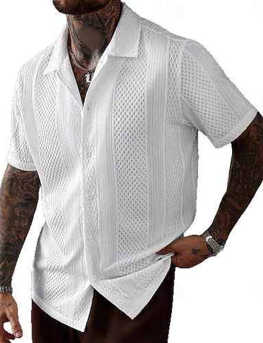 Męskie Koszula Codzienna koszula Zapinana na guziki koszula Koszula żakardowa Czarny Biały Rumiany róż Granatowy Morelowy Krótki rękaw Równina Kołnierzyk koszuli Codzienny Streetwear Guziki Odzież