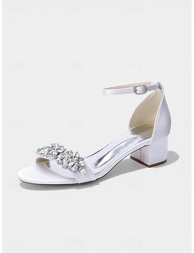 Damskie sandały na wysokim obcasie w kolorze granatowym z satyny z klamrą - eleganckie buty na koktajlowe przyjęcie z detalami z kryształków