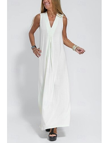 Damskie Sukienka maxi Letnie sukienki Codzienny Codzienny Luźna Równina Bez rękawów W serek Niebieski Czarny Biały Brązowy Lato
