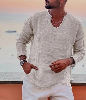 Męskie Koszula Koszula lniana Koszula Popover Letnia koszula Stroje plażowe Codzienna koszula Równina Urlop Codzienny Czarny Biały Rumiany róż Granatowy Długi rękaw Henley Wiosna i lato Odzież