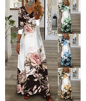 Damska sukienka maxi sukienka casualowa kwiatowy wzór dekolt w serek maxi długa sukienka casualowy codzienny wakacje 3/4 długości rękaw lato wiosna