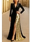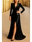 Sukienka smokingowa Osłona Formalny Ślub Cekiny Poliester / Bawełna Elegancja Błyszczące Długi rękaw Sięgająca podłoża Wieczorne Kołnierzyk z klapami Zamek błyskawiczny