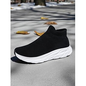 Damskie Adidasy Codzienny w pomieszczeniach Podróże Płaski obcas Okrągły palec u nogi Sportowy Codzienny Wygoda Bieganie Spacery Siateczka Mokasyny czarny / biały Czarny Ciemnoniebieski