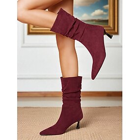 Damskie czerwone zamszowe botki ze spiczastym noskiem – eleganckie botki na wysokim obcasie z zamkiem błyskawicznym na świąteczne przyjęcia, specjalne okazje i zimową modę