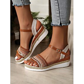 Damskie brązowe, plecione sandały na koturnie – wygodne espadryle na platformie na wakacje na plaży i wypady na wyspy &letni styl boho