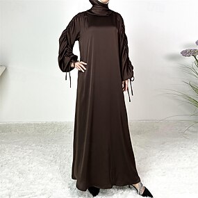 Damskie Długa sukienka sukienka maxi Sukienka na imprezę Sukienka rozkloszowana Elegancja Moda Klasyczny Codzienny Na zewnątrz Wyjściowe Regularny Równina Długi rękaw Półgolf Szampański Brązowy