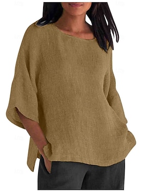 Damskie Bluzka Eleganckie topy Sztuczna bawełna len Z marszczeniami Niejednolita całość Zamek Jednokolorowe Równina Elegancja damska Elegancki Rękaw 3/4 W serek Zwykłe topy Codzienny Praca Wyjściowe