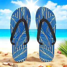 męskie klapki z nadrukiem w niebieskie liście – tropikalny i stylowy styl na wakacje na plaży, wyspiarskie wycieczki i kolacje na plaży