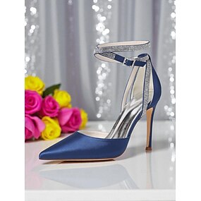 damskie fioletowe satynowe szpilki ze spiczastym noskiem i paskiem na kostce z kryształkami - efektowne buty na wysokim obcasie dla kobiet, idealne na koktajle i wieczorne imprezy