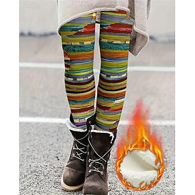 Damskie Getry Przytulne legginsy Zabytkowe Moda Moda miejska Pełna długość Wysoka taliaPantsŚwięta Graficzny Prążki Drukowanie Polar Keep Warm Wygodne Elastyczny Na zewnątrz Codzienne Różowy Zielony