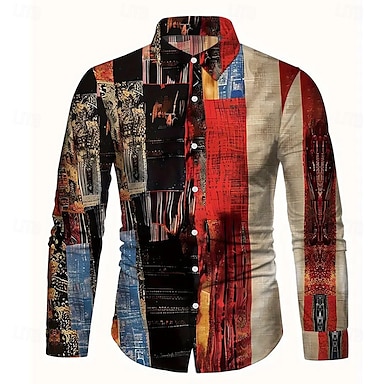 Męskie Geometryczny Kolorowy blok Niejednolita całość Koszula Zapinana na guziki koszula Długi rękaw Vintage Retro Na zewnątrz Codzienny Streetwear Wiosna Jesień Wieczorne Druk 3D Jedna kieszeń z