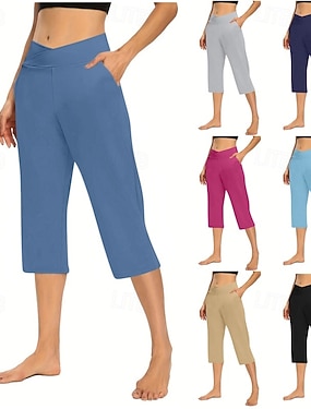 Damskie Typu Chino Urlop Moda miejska Codzienny Długość do łydki Średia talia Równina Kieszeń Elastyczny pas Wygodne Elastyczny Codzienny Na zewnątrz Joga Niebieski Czarny Jasnoszary Khaki Lato Wiosna