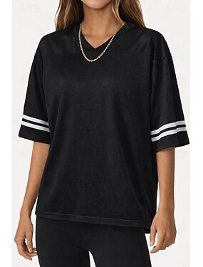 Damskie Oversize Koszulka sportowa Y2K Kolorowy blok Z wycięciem Prążki Zabytkowe Elegancki Codzienny Krótki rękaw W serek Długie topy Siłownia Sport Wyjściowe Czarny Biały Lato Wiosna