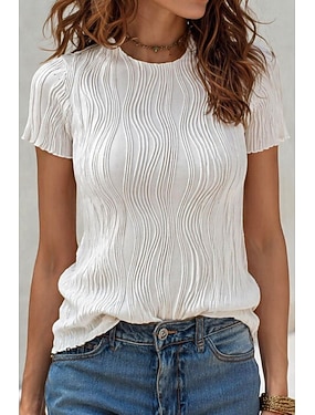 Damskie Podkoszulek Teksturowany Koszulka Żakard Falbana Jednokolorowe Elegancja Moda Elegancki Krótki rękaw Półgolf Zwykłe topy Codzienny Wyjściowe Weekend Czarny Biały Wino Zielony Lato Wiosna