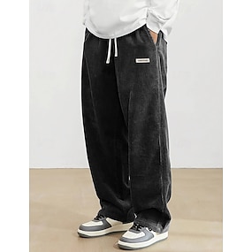 Męskie Spodnie Spodnie sztruksowe Luźne spodnie Spodnie dresowe z prostymi nogawkami Ściągana na sznurek Elastyczny pas Jednokolorowe Komfort Pełna długość Na zewnątrz Codzienny Streetwear Moda Styl