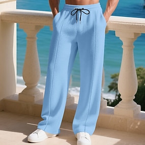 Męskie Spodnie dresowe Spodnie Spodnie dresowe z prostymi nogawkami Spodnie waflowe Ściągana na sznurek Kieszeń Elastyczny pas Równina Komfort Sporty na świeżym powietrzu Codzienny Moda Codzienny