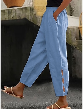 Damskie Sztuczna bawełna len Bezczelny Typu Chino Letnie spodnie Urlop Moda miejska Podstawowy Pełna długość Średia talia Równina Kieszeń Elastyczny pas Wygodne Komfort Elastyczny Codzienny Na