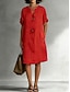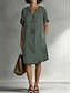 Damskie Sukienka do kolan Sztuczna bawełna len Bawełniana lniana sukienka Elegancja Moda Nowoczesny Codzienny Na zewnątrz Urlop Luźna Równina Krótki rękaw W serek Żółty Rumiany róż Wino Ziele
