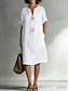 Damskie Sukienka do kolan Sztuczna bawełna len Moda Nowoczesny Codzienny Na zewnątrz Urlop Luźna Równina Krótki rękaw Kołnierzyk koszuli Czarny Biały Żółty Zielony Lato Wiosna