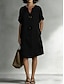 Damskie Sukienka mini Sztuczna bawełna len Sukienka koszulowa Klasyczny Codzienny Święto Wyjściowe Regularny Równina Rękaw 3/4 Kołnierzyk koszuli Czarny Zielony Khaki Szary Lato