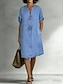 Damskie Sukienka do kolan Sztuczna bawełna len Sukienka trapezowa Codzienne sukienki Sukienka bawełniana Moda Nowoczesny Codzienny Weekend Luźna Równina Krótki rękaw Kołnierzyk koszuli Niebieski