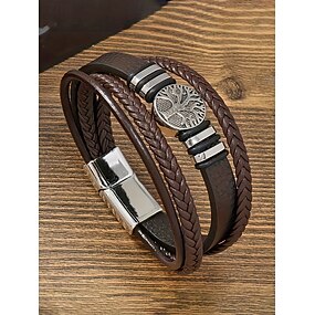 Męska bransoletka z wielowarstwowej skóry ekologicznej Viking Tree of Life – pleciona opaska z ekologicznej skóry w wielu kolorach, styl boho punk na wakacje na plaży, codzienny strój na co dzień i prezent dla niego