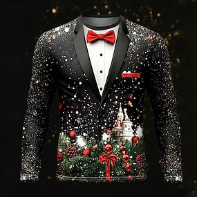 Święta Męskie Świąteczny kostium Smokin Podkoszulek Długi rękaw Podkoszulek Druk 3D Półgolf Koszula Moda Podstawowy 3D Ulica Codzienny Czarny 1 Lato Wiosna Odzież S M L XL XXL XXXL