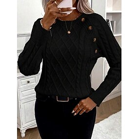 Damskie Sweter Codzienny Miękkie Czyste kolory Kable Półgolf Guziki Dzianiny Długi rękaw Zwykłe topy Robić na drutach Na zewnątrz Codzienny Weekend Czarny Biały Jesień Zima