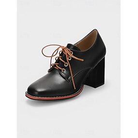 Damskie sznurowane buty typu oxford w kolorze czarnym - buty retro na niskim obcasie, idealne na festiwale piwne, Oktoberfest, jesienne wydarzenia i codzienne stylizacje w stylu retro