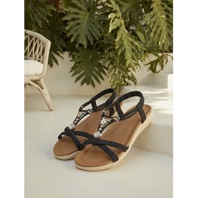 eleganckie czarne sandały z paskiem w kształcie litery T dla kobiet – letnie sandały zdobione kryształkami, idealne na plażę, na niezobowiązujące wyjścia i wieczorne imprezy