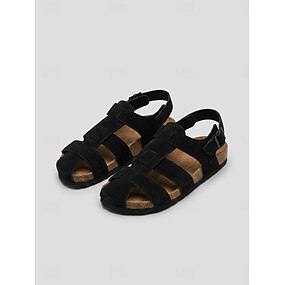 Wygodne sandały damskie na platformie z czarnego zamszu – szerokie paski z wycięciami na wakacje na plaży i do ośrodków wypoczynkowych na świeżym powietrzu &letnie podróże