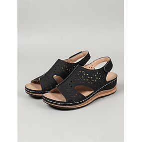 Damskie czarne sandały na koturnie, zapewniające wygodę – wygodne, codzienne buty na platformie, idealne na zakupy, podróże i do noszenia na co dzień