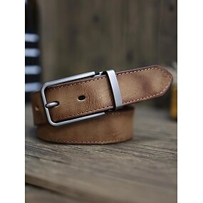 Męski pasek z prawdziwej skóry bydlęcej – brązowy pasek w stylu vintage z matową, stopową klamrą, regulowany do jeansów, pracy, na co dzień i do noszenia w biznesie