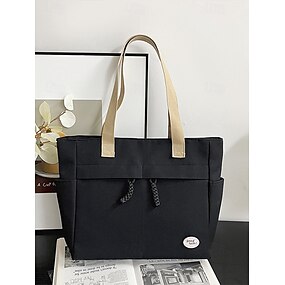 damska torba płócienna o dużej pojemności z wieloma kieszeniami – lekka, swobodna torba na ramię do pracy, szkoły, podróży i codziennego użytku