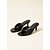 Damskie, czarne, lakierowane buty na średnim obcasie, wykonane ze sztucznej skóry - klasyczne czółenka z okrągłym noskiem, idealne do biura, na oficjalne okazje i do kościoła.