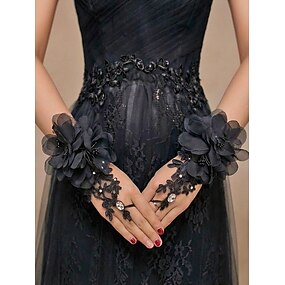 Damskie rękawiczki ślubne, materiał poliestrowy, wielokolorowe, wzór płatków kwiatów z akcentami kryształków, eleganckie koronkowe rękawiczki idealne na wesela, przyjęcia i specjalne okazje