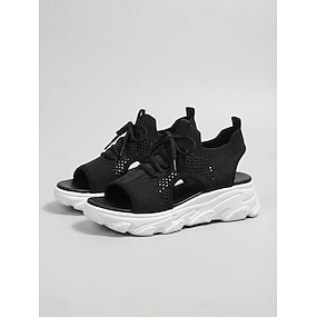 Damskie pomarańczowe, dzianinowe trampki z odkrytymi palcami – oddychające, sportowe buty na platformie do noszenia na co dzień, na spacery, na świeżym powietrzu i na co dzień