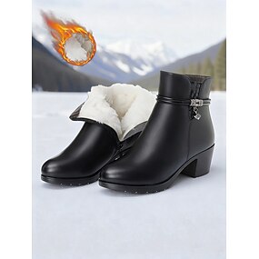 damskie botki ze skóry ekologicznej z podszewką ze sztucznego futra – ciepłe, antypoślizgowe obuwie zimowe z detalami w postaci klamry