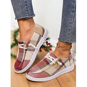 Damskie buty w kratę typu slip-on – wygodne, codzienne buty na święta Bożego Narodzenia, zimowe spotkania i świąteczny relaks